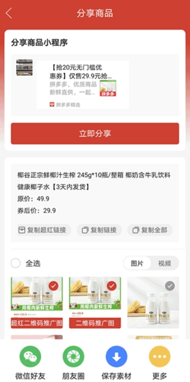 接着在分享商品界面找到并点击“立即分享”选项。