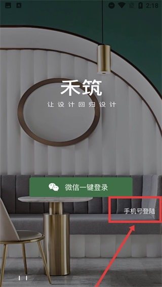 在禾筑的登录选择页面,选择【手机号登陆】选项,即可进入手机号登录的信息填写界面。