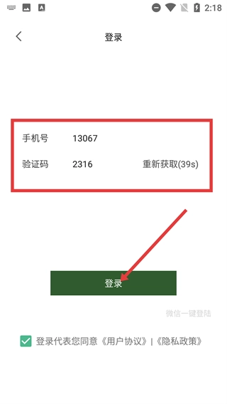 在登录页面,先确保【手机号】和【验证码】都已正确填写,之后点击【登录】按钮,即可完成禾筑App的账号登录操作。