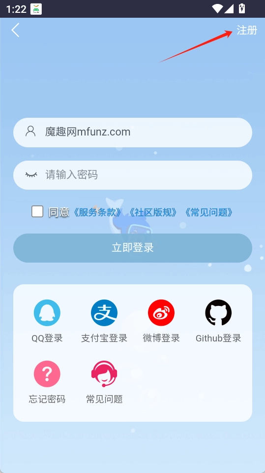 然后点击右上角注册