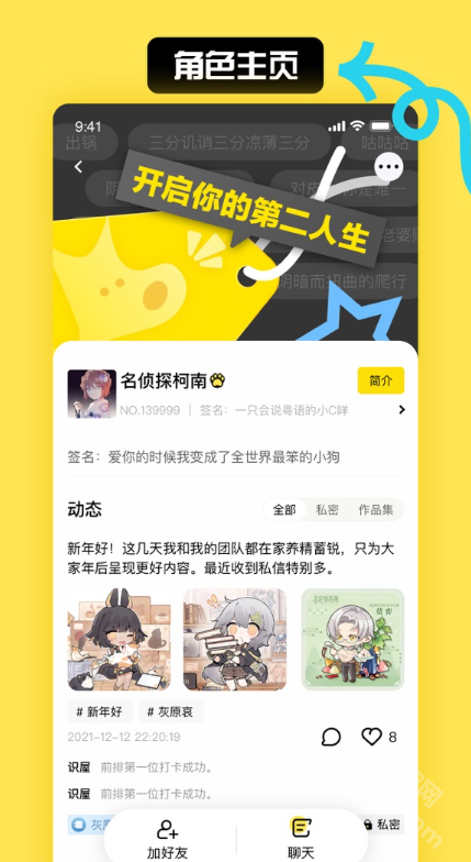 角色扮演主题:用户能够自行设置个人角色信息,通过代入cosplay角色,构建专属于自己的独特精神家园。