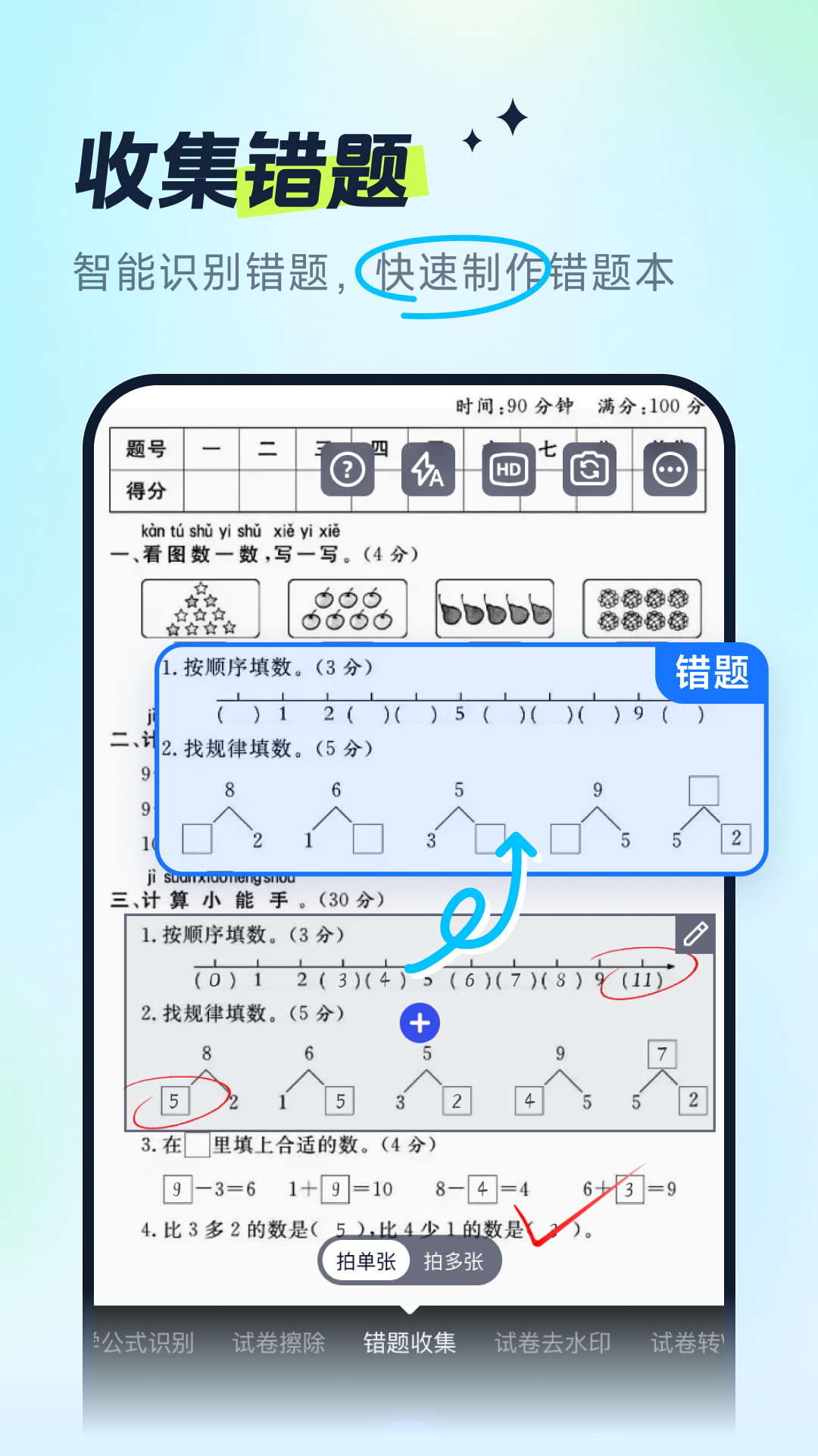 多功能集成:整合错题收集、试卷识别、试卷擦除、翻译等实用功能,全方位覆盖用户的多元化使用需求。