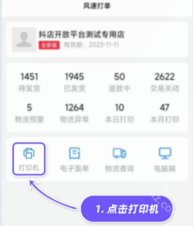 在【应用中心】页面找到【风速打单】服务,点击【去使用】按钮开始操作。