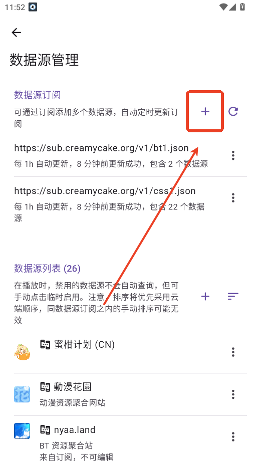 点击界面上的“+”号图标,准备添加属于自己的个性化源。