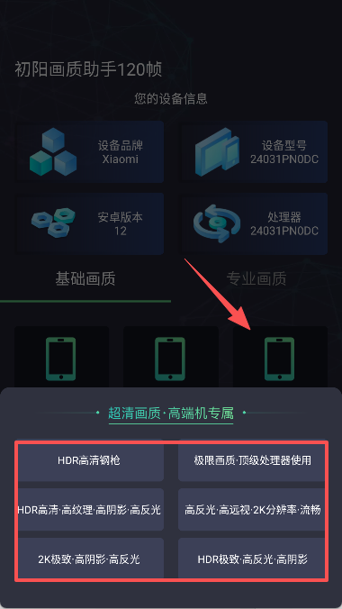 初阳画质助手120帧是FPS玩家不可或缺的辅助工具,它能显著提升游戏的画质与帧率,让游戏体验更清晰流畅。此外,软件还针对不同手机的配置性能,提供了低端机、中端机等多种优化方案,玩家可根据自身设备情况自由选择开启!