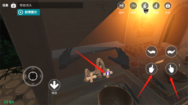 正式进入游戏后,左右手心向上的手掌分别对应“给”和“索要”的功能,你既可以把物品递给小忍,也能向她索要物品。