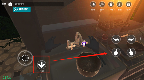 当角色的左右手都持有物品时,可同时点击下箭头与对应侧的手指手势,以此释放该侧手中的物品。