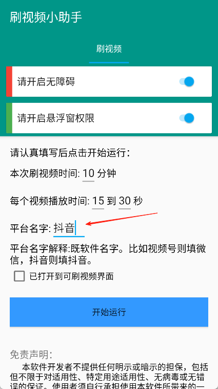 3、填写我们希望实现自动刷视频功能的平台,例如抖音、快手之类的。