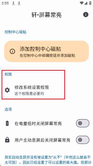 4、低电量时手动关掉常亮,避免手机突然关机。