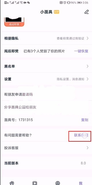 2、进入个人中心界面后,点击选项列表里的“联系客服”选项。