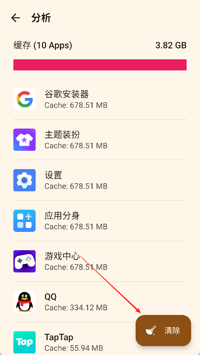 3、分析结束后,可点击“清除”按钮以释放手机内存。