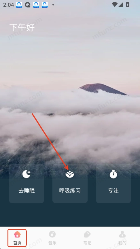 1.打开声萌助眠,在首页点击呼吸练习