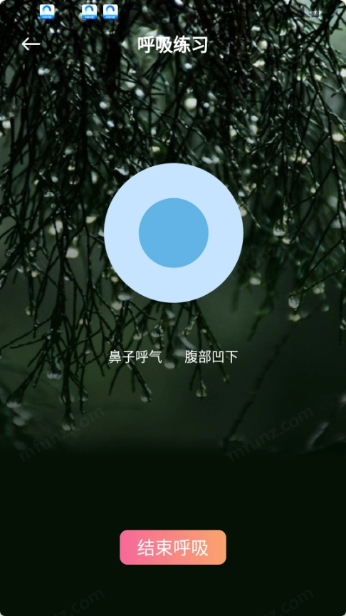 3.点击开始呼吸后,会告诉你鼻子呼气时,腹部凹起,鼻子吸气时,腹部凸起,平时练习瑜伽不懂的呼吸的朋友可以跟着声萌助眠练习一段时间会的收获的。
