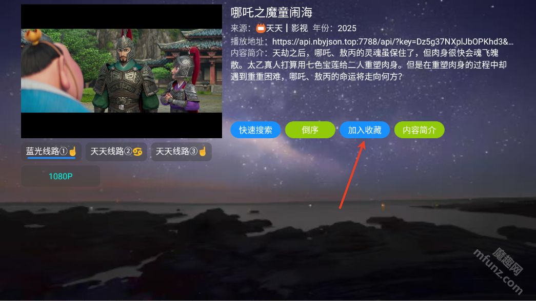 6、选中影片点击“收藏”,方便日后访问和回看。