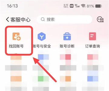 点击找回账号