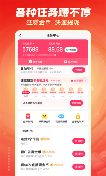 快手极速版正规软件是快手科技推出的极速版应用,相比原版本有了很大变化,它体积小巧,安装速度极快。这里汇聚了众多短视频创作者,还有热门明星带来近距离直播,兼具魔性与时尚风格!