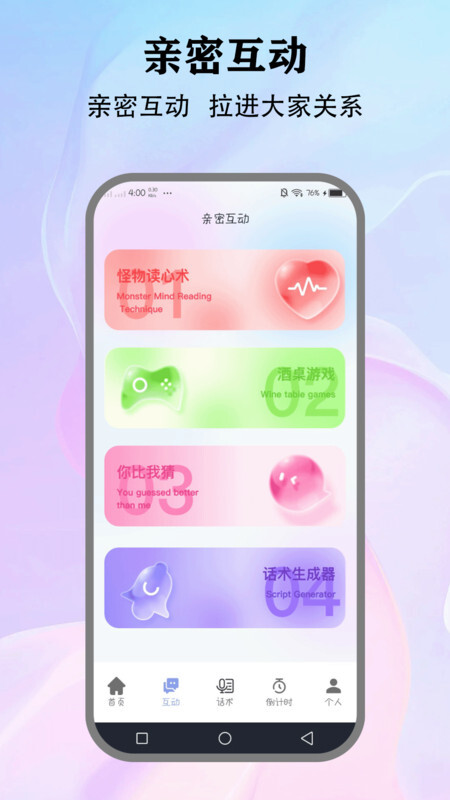 1. 亲密互动涵盖了诸如怪物读心术之类的多种趣味游戏,能有效打破冷场局面。