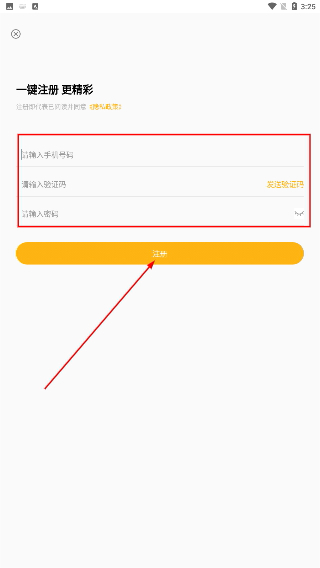 4、若选择注册,在【请输入手机号】处填写号码后点击【发送验证码】,输入收到的验证码和设置的密码,然后点击【注册】按钮即可完成账号创建。