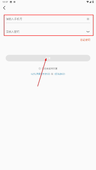 3、选择手机号登录后,在对应输入框依次填写【请输入手机号】与【请输入密码】信息,准备完成登录。