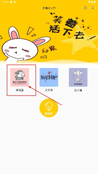 1、在主界面,点击【表情包】选项,进入DIY创作板块,开启表情包的自定义制作流程。