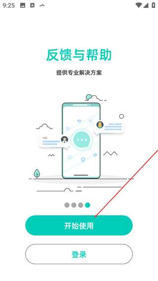 2、在【反馈与帮助】引导页,点击【开始使用】按钮,即可进入后续的功能操作流程。