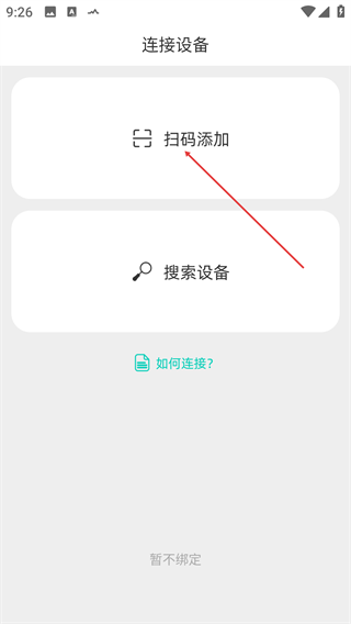 4、进入【连接设备】页面后,能够借助【扫码添加】或者【搜索设备】这两种方式,完成设备绑定的相关操作。