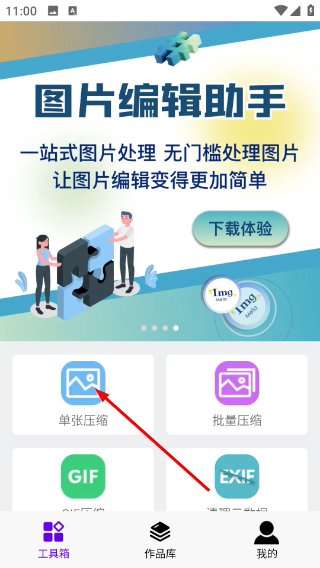 1、打开图片编辑助手界面,选择【单张压缩】功能选项,进入本地图片选择页面后,即可选取需压缩的图片素材。