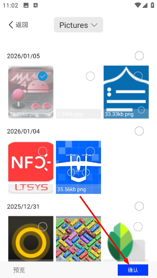 2、在图片选择页面,选中目标图片后点击【确认】按钮,即可进入单张压缩的编辑界面,在该界面中可以查看图片的格式、大小等相关信息。