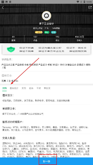 4、在设计项目详情页底部,点击【立即沟通】按钮,即可发起与服务提供方的对接流程,既能推进合作事宜,也能查看资料详情。