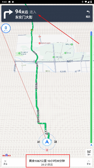 4、在导航界面,跟随规划路线行驶,同时可查看剩余距离、预计耗时等信息,前往目标停车场。