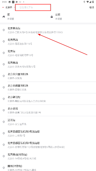3、在搜索栏中输入你需要下车的地址,或者直接点击推荐的下车地点即可。