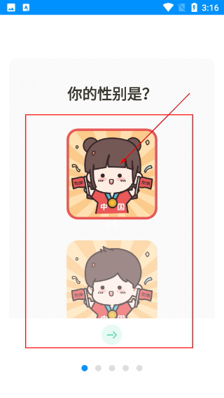 2、进入性别选择界面后,依据自身实际情况挑选对应的性别头像,完成这一选择后,即可进入下一步的信息填写环节。
