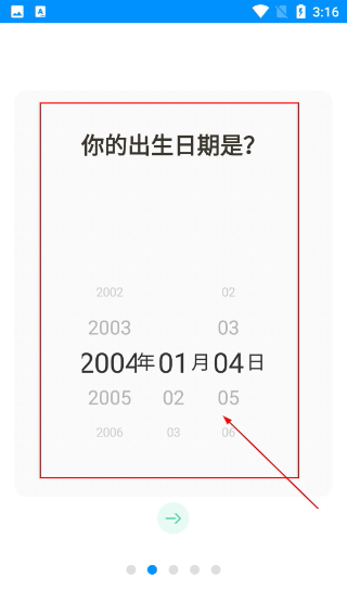 3、进入出生日期选择页面后,挑选好对应的日期(例如【2004年01月04日】),确认无误后即可进入下一个个人信息填写环节。