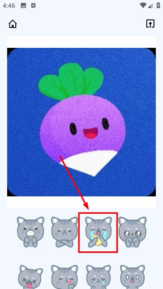 3、在贴纸编辑页面挑选你想要的贴纸样式(例如带有哭泣表情的猫咪贴纸),就能把这个贴纸添加到图片里了。
