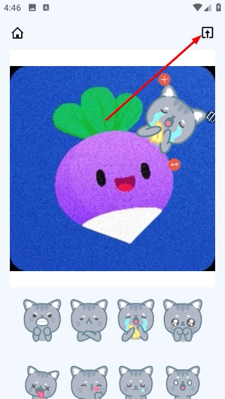 4、贴纸添加好后,点击页面右上角的分享或保存按钮,就能导出经过编辑的图片了。