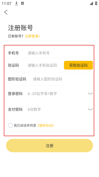 4、进入注册账号页面后,按顺序填写【手机号】【验证码】等信息,勾选相关协议,再点击注册按钮,即可完成账号创建。
