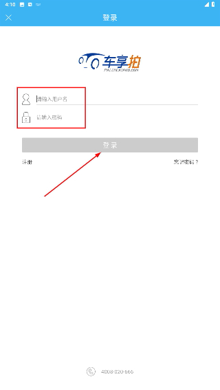 2、在登录界面中,依次填写【请输入用户名】和【请输入密码】这两个字段,填写完毕后点击相应按钮提交信息。