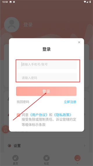 3、在登录窗口,填写【请输入手机号/账号】与【请输入密码】,确认协议勾选后点击【登录】。