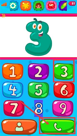 1、在数字按键区域找到想要拨打的数字(比如【3】),点击该数字后,再点击底部的绿色通话按钮,即可发起相应的呼叫。