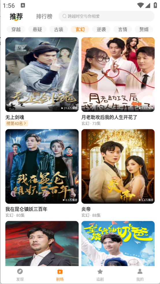 进入首页后,顶部栏里有不少短剧资源,都市、古装、玄幻等各种类型都能找到。