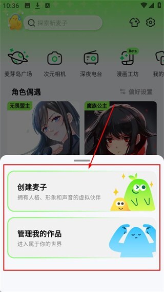 3、点击【创建麦子】,即可进入虚拟伙伴的创建流程,打造专属于你的伙伴啦。