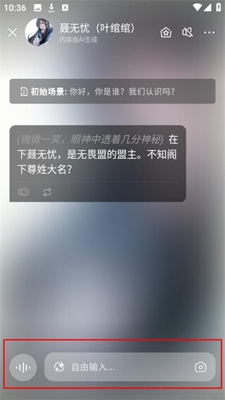 2、在互动界面的输入框中随意输入内容,即可与角色展开互动,开启趣味对话。