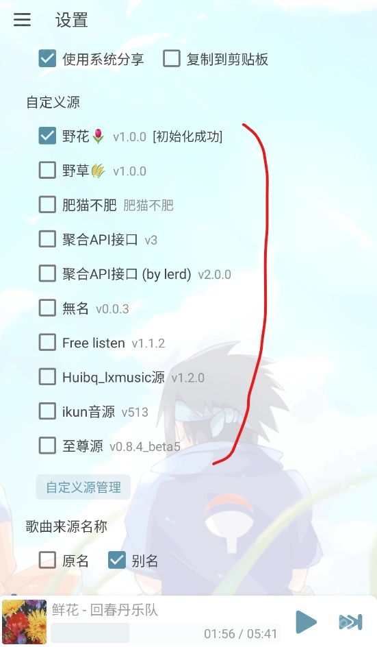 3、下滑页面,找到自定义源,点击其他源即可切换。