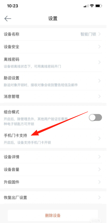 1.打开小益智能,进到设置界面,然后点击手机门卡支持