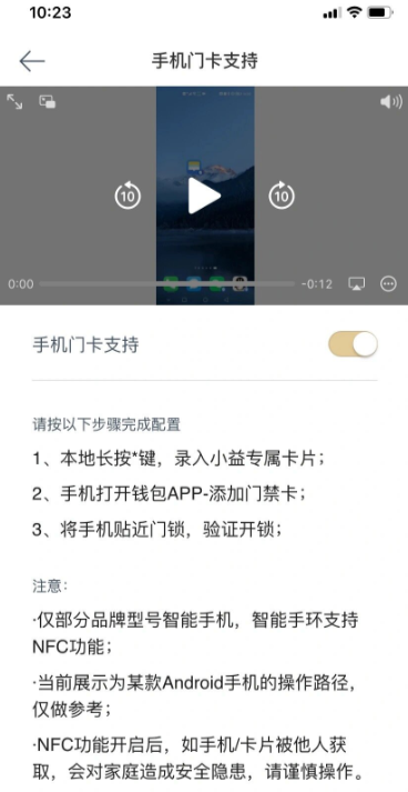 ·NFC功能开启后,如手机/卡片被他人获取,会对家庭造成安全隐患,请谨慎操作。