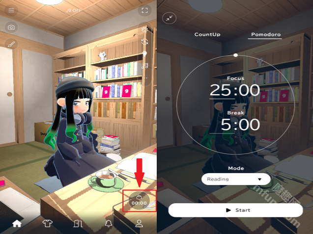 8、屏幕右下角设有番茄计时器,其默认的专注时长为25分钟,专注结束后会奖励5分钟的休息时间。