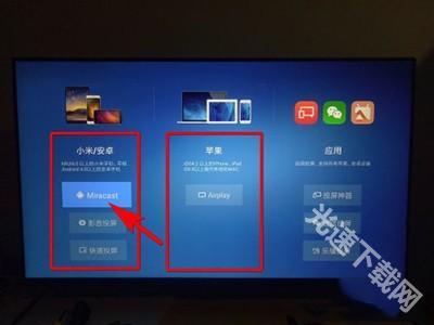 接着进入设置选择界面,能看到两种无线连接功能,一种是适配安卓/小米设备的Micracast无线连接,另一种是苹果手机适用的Airplay功能,这里我们选择前者——安卓手机的Micracast连接。