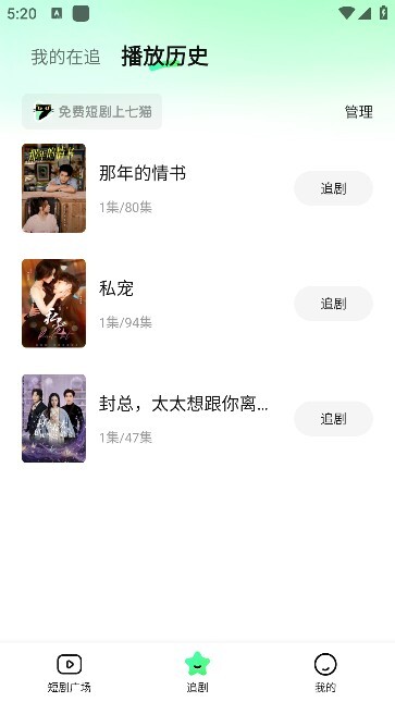 6、点击追剧还可以查看播放的历史记录