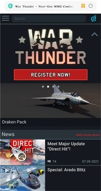 1、打开浏览搜索War Thunder进入网页中。