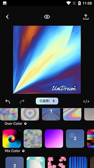 3、用户能够在软件里叠加多种艺术效果,选好之后点击图片上方的小眼睛图标就能预览效果,再点击右上角的保存或分享按钮,即可完成作品的保存或分享操作。